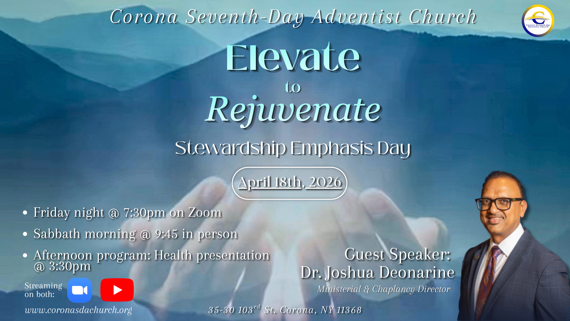 Corona Seventh-day Adventist Church-Stewardship Emphasis Day + Add to Google Calendar + iCal / Outlook export Date Apr 18 2026 Category Local Church Share this event