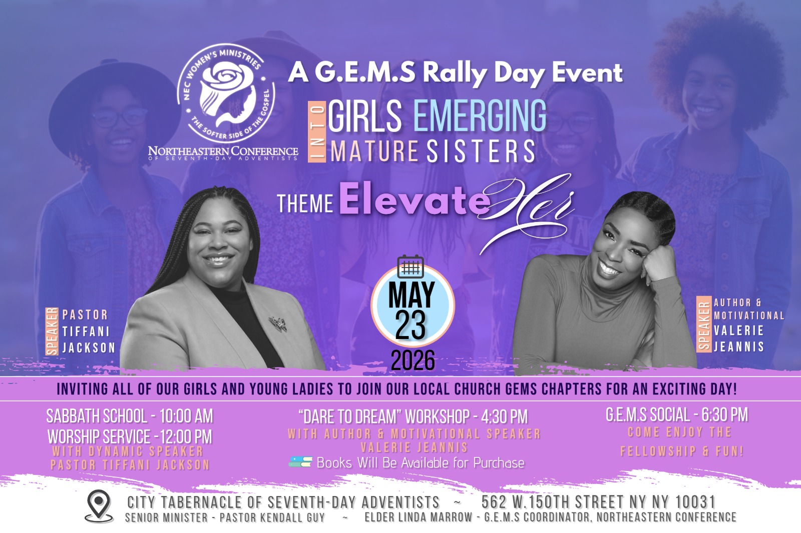 G.E.M.S Rally Day Event (Girls Emerging into Mature Sisters) + Add to Google Calendar + iCal / Outlook export Date May 23 2026 Time 10:00 am - 8:00 pm Category Women's Ministries Share this event