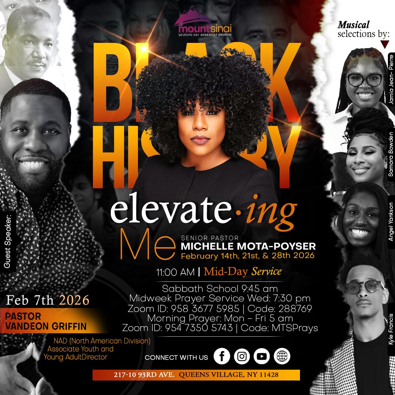 Mount Sinai Seventh-day Adventist Church – Elevate-ing Me + Add to Google Calendar + iCal / Outlook export The event is ongoing. Date Feb 07 - 28 2026 Ongoing... Time 9:45 am Category Local Church Share this event
