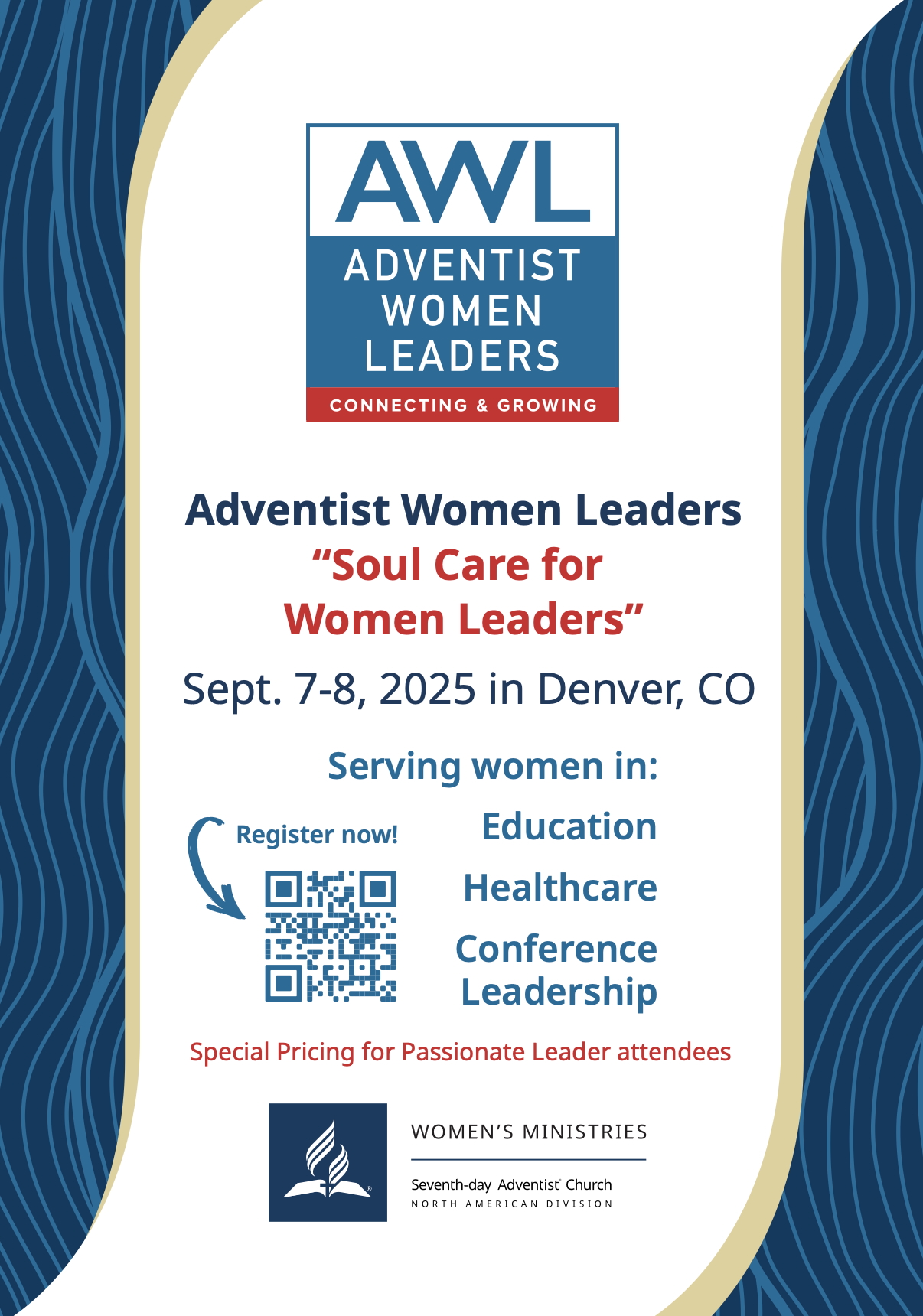 When you register for the AWL Symposium, you will receive a $50 discount code for the North American Division Women’s Ministries Passionate Leader Summit on September 4-6. For more details about the Passionate Leader event, please visit https://www.nadwm.org.