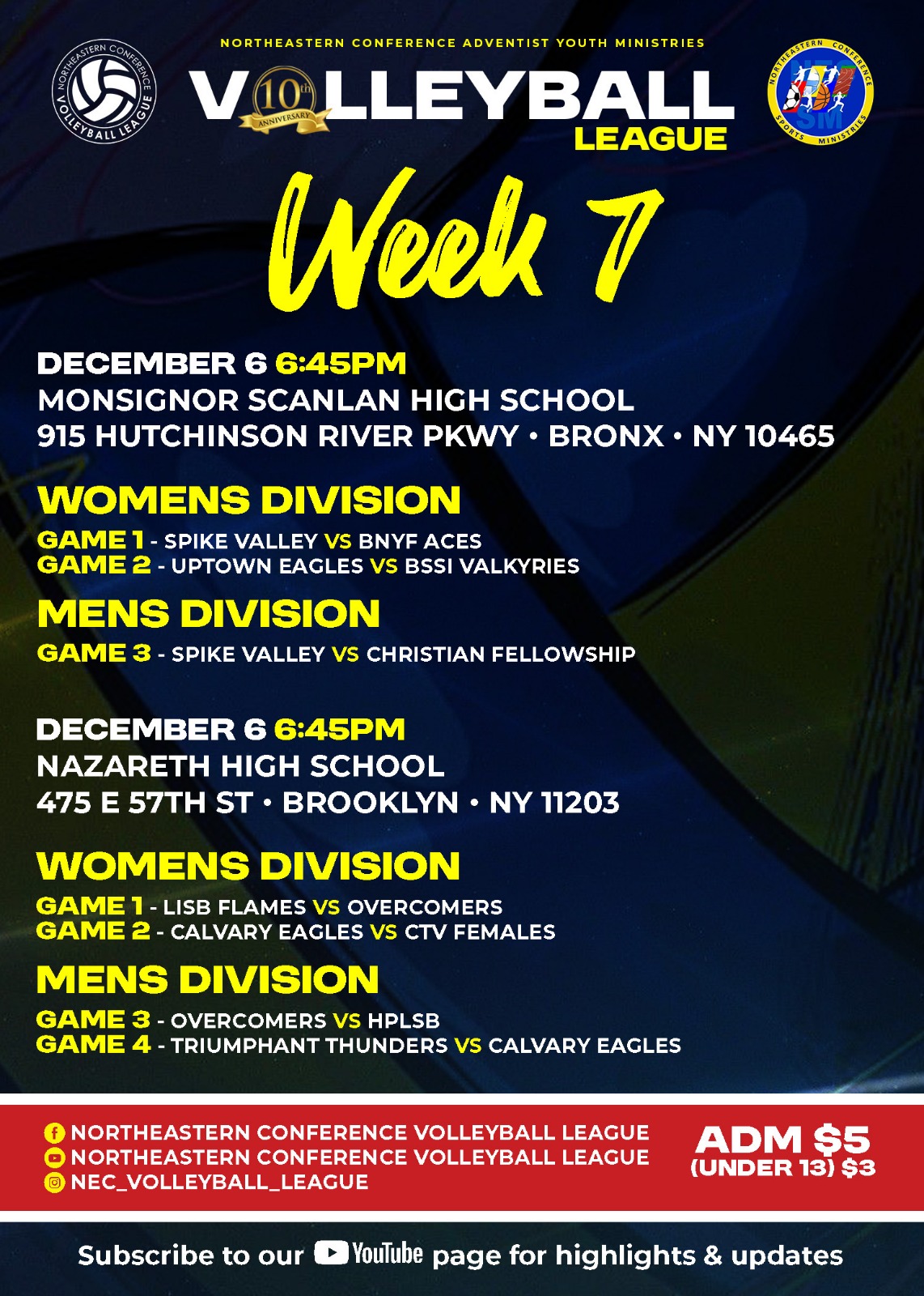 Volleyball Games – Week 7 + Add to Google Calendar + iCal / Outlook export The event is finished. Date Dec 06 2025 Expired! Time 6:45 pm - 10:00 pm Category Front Page Only Youth Ministries Share this event