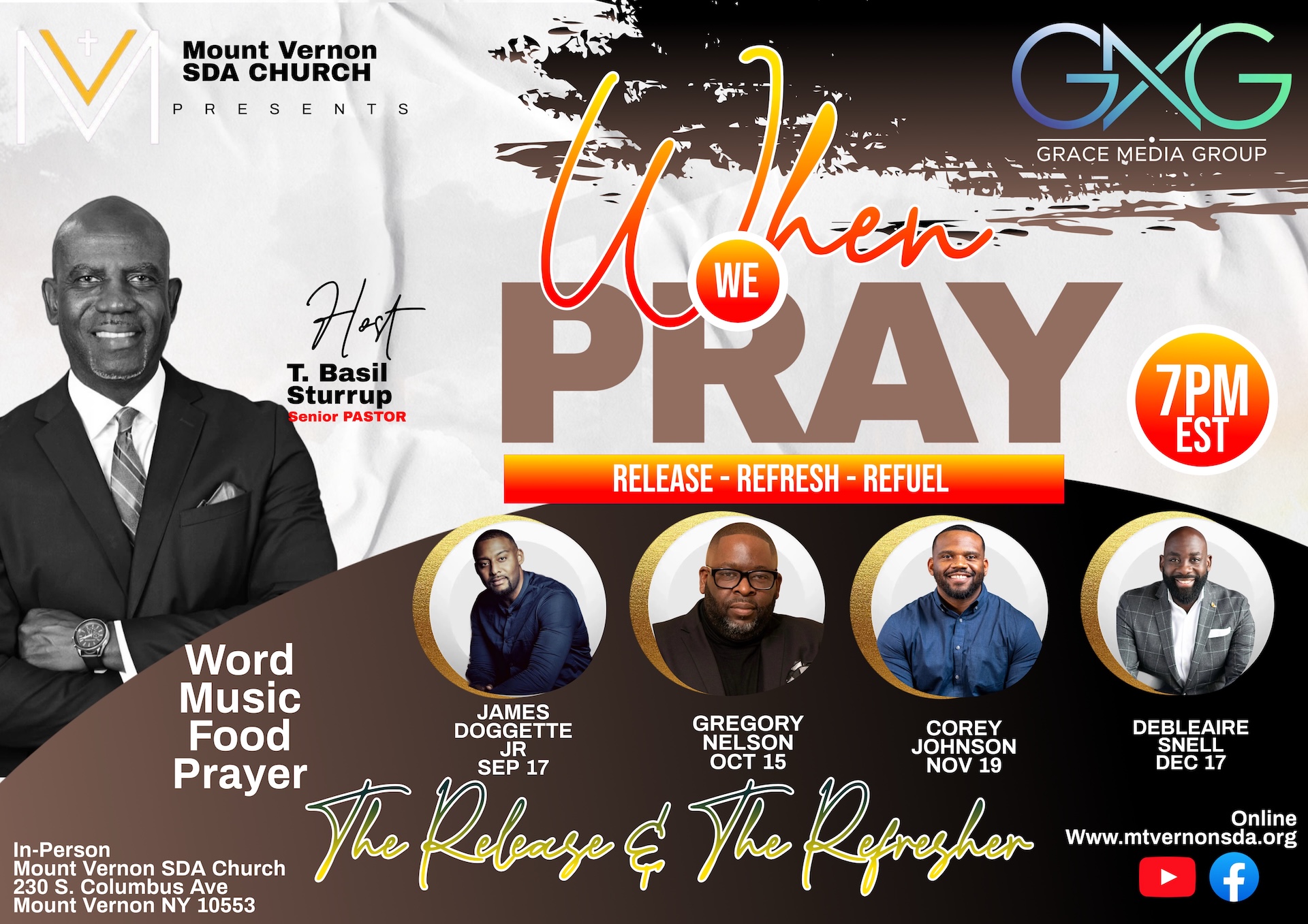 When We Pray The Mt. Vernon Seventh-Day Adventist Church invites you to the in-person Wednesday Release + Add to Google Calendar + iCal / Outlook export The event is finished. Date Sep 17 2025 Expired! Time 7:00 pm - 7:00 pm Location Mount Vernon SDA Church Category Local Church Share this event